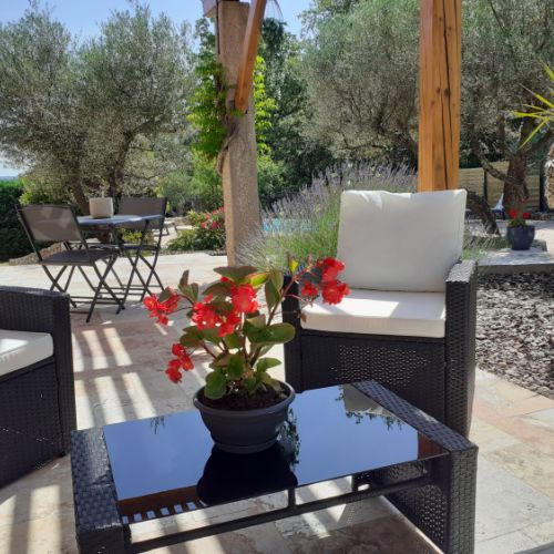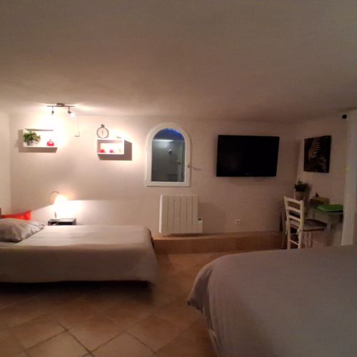 Vous logerez dans un studio de 28m² avec entrée indépendante et terrasse privative bordée d'oliviers, de lauriers et de lavandes.