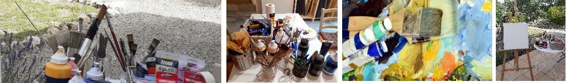 Tout le matériel à disposition : chevalet, 1 toile par après-midi, peinture, couteaux, pinceaux, brosses, spalters ......